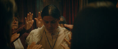 Clara's sense of herself comes into stark clarity through her conversations with Santiago, who probably has no idea (at least at first) what he is unleashing in her. There's a fascinating moment where he asks her what it was like to see the Virgin Mary. Clara has no attachment to that narrative. That narrative was invented by her mother as a way to cope with the shame of having a disabled daughter. Turn her into a magical mystical being, don't allow her to get corrective surgery, God will bless us then. Clara says to Santiago in response to his question: "I can do whatever I feel like." It's a startling statement. She sounds proud, stubborn, sure of herself. Clara has worlds within her, vast spaces where no one can get to her, where she is free. A woman saying "I can do whatever I feel like" is threatening no matter the context, but in this one especially.